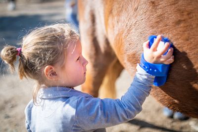 Through guided, hands-on interaction with the horse — including leading, grooming, and balance activities — children develop strength, coordination, postural control, and emotional regulation in a natural, engaging environment.